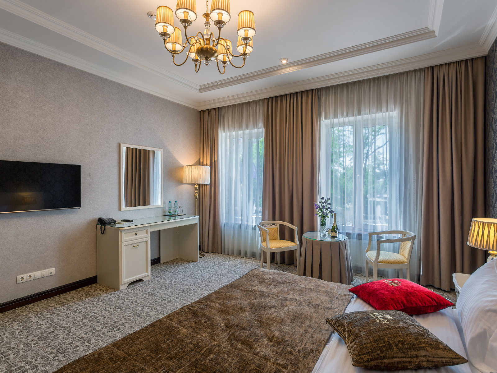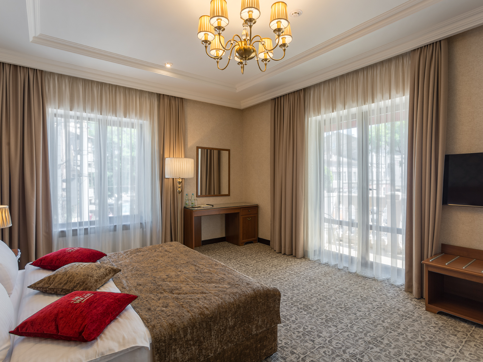 Номер категорії «Люкс» — Просторий однокімнатний номер площею 30м2 виконаний у класичному стилі. В номері двоспальне ліжко розміром King Size та диван, на якому можна розмістити додаткову особу. Номер розташований на 2 поверсі. У комплектацію номера входить: