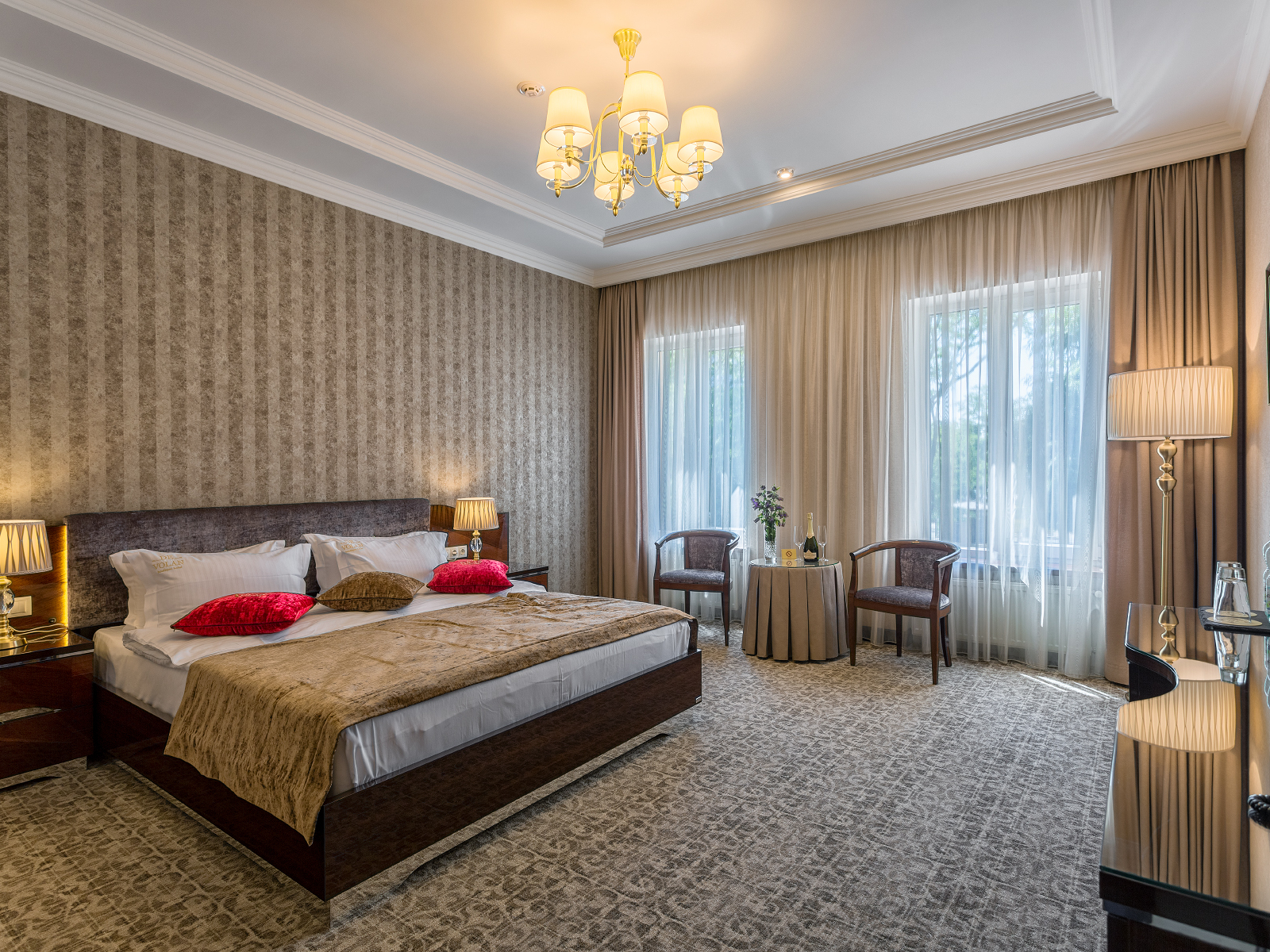 Номер категорії «Напівлюкс» — Однокімнатні номери виконані у класичному стилі площею 25-27 м2. В номері одне двоспальне ліжко розміром King size та диван, на якому можна розмістити додаткову особу. Розташовані на 2 поверсі.